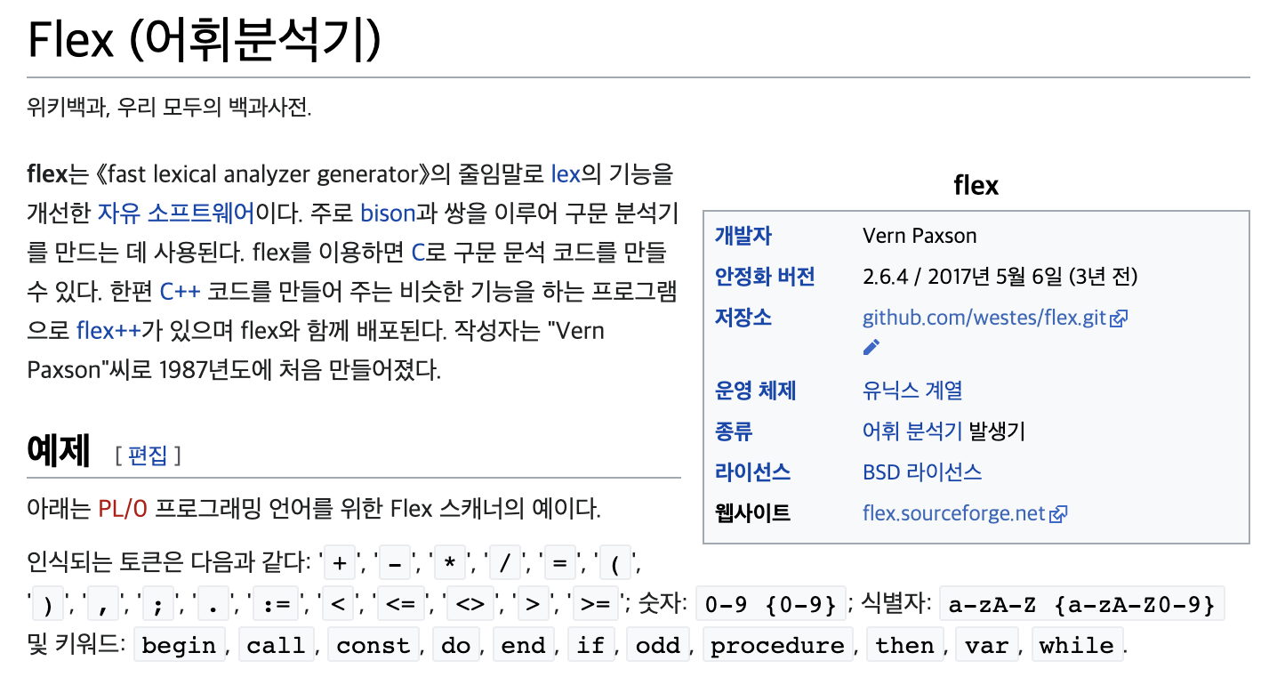 웹킷은 잘 알려진 두 개의 파서 생성기를 사용한다. 어휘 생성을 위한 플렉스(Flex)와 파서 생성을 위한 바이슨(Bison)이다. 렉스(Lex)와 약(Yacc)이라는 이름과 함께 들어본 적이 있을지도 모르겠다. 플렉스는 토큰의 정규 표현식 정의를 포함하는 파일을 입력받고 바이슨은 BNF 형식의 언어 구문 규칙을 입력 받는다.
